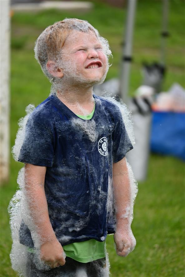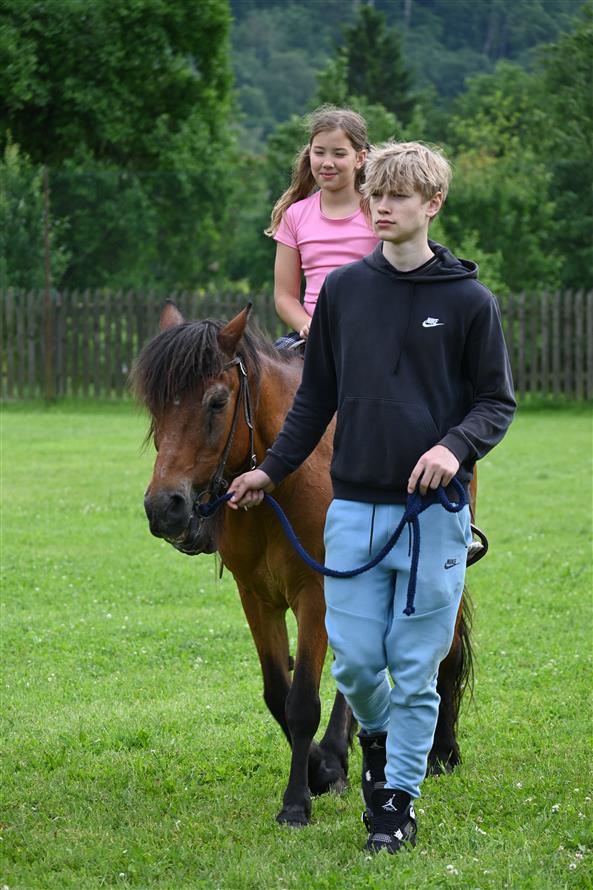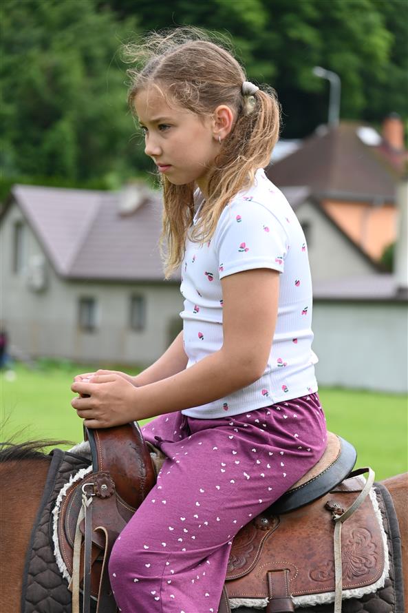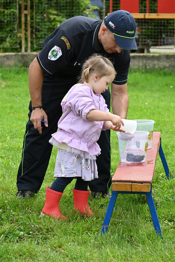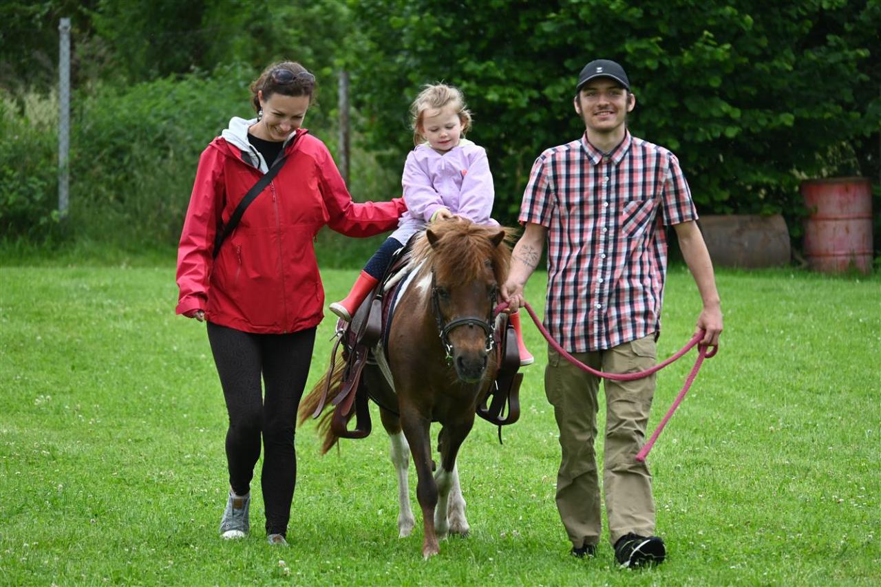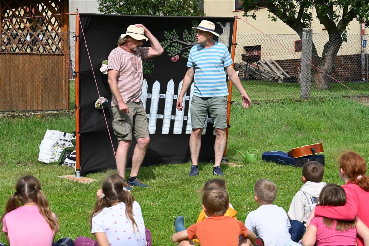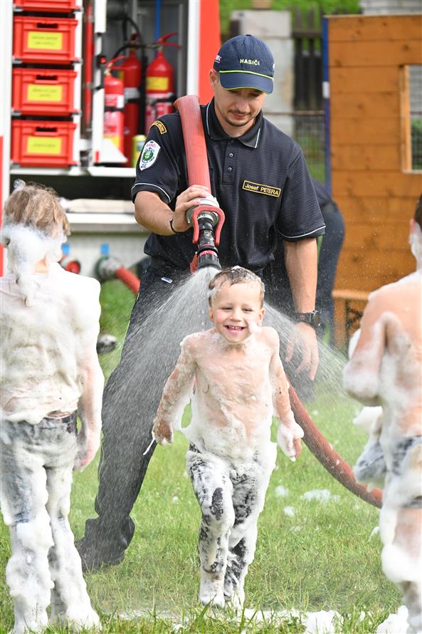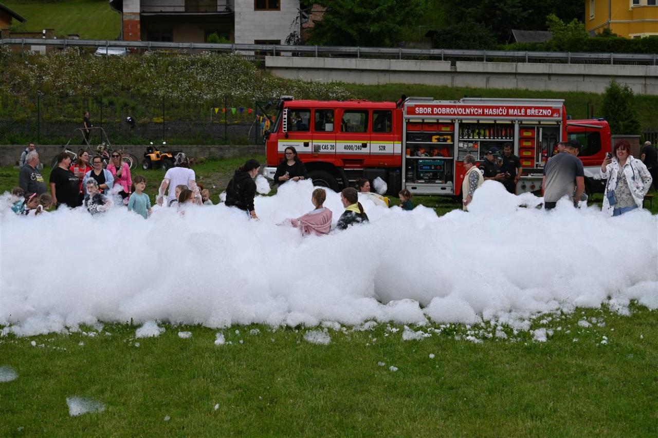 Děti střílely šišky jako Rumcajs, pletly Zlatovlásce cop, házely kroužky na jelena, lovily sladkosti jako Bystrozraký a mnoho dalšího. Nechyběla pohádka Slimák od Divadla Krabice, airbrush tetování, jízda na koni, střelnice i ukázka od SDH Malé Březno. K tomu vafle, malinovka, točená zmrzka, párek v rohlíku – no zkrátka paráda! Na závěr přišla hasičská pěna a malý útěk poníka – naštěstí skončil šťastně a bez škrábnutí 🐎